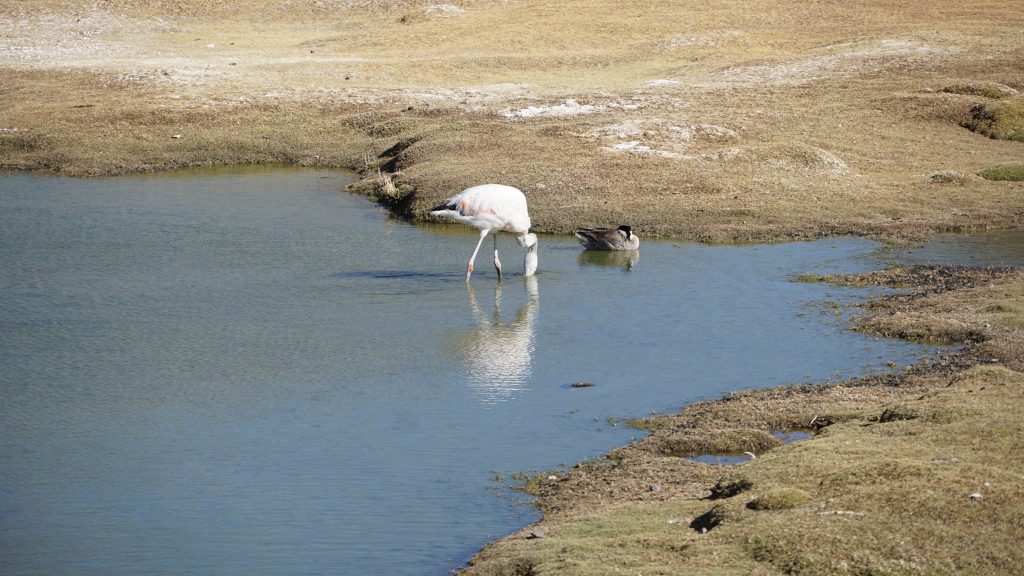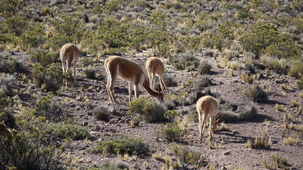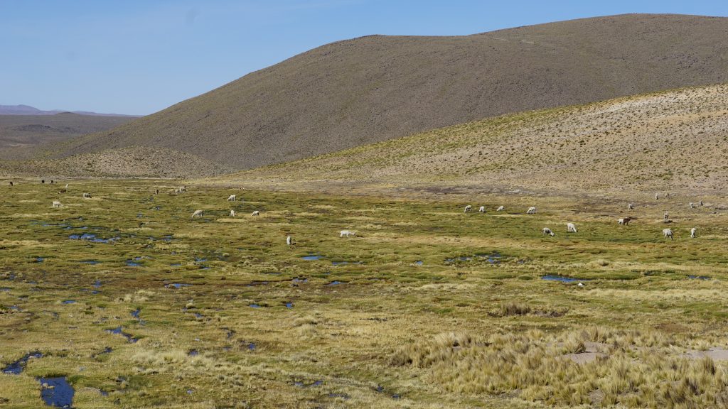 Wir befinden uns auf dieser Höhe (4000hm) nicht mehr in der Wüste, sondern in der Pampas. Staubig war es zwar immer noch, aber auch wesentlich grüner und feuchter. Auch waren wieder viele Vicunias und Alpacaherden zu sehen.