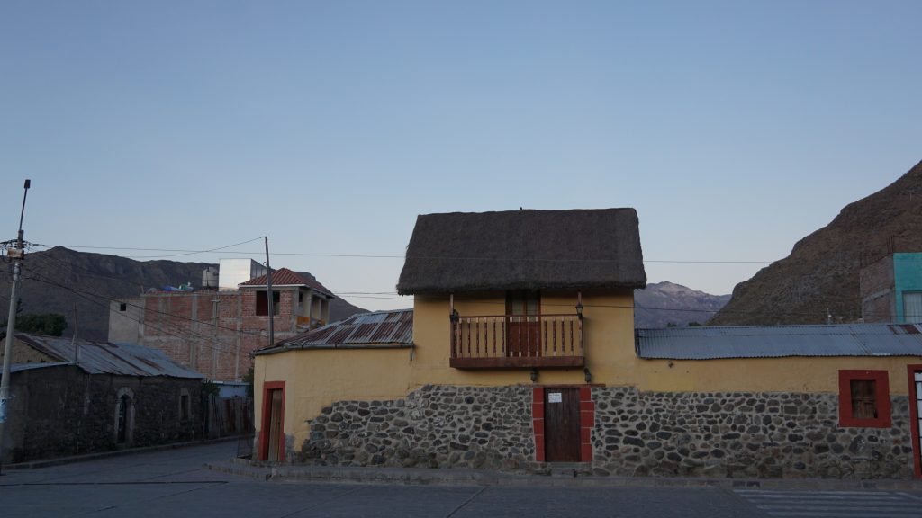 Das wir in dieser Höhe nicht übernachten wollten war uns klar. Chivay (Eingang zum Canyon) liegt auf 3600hm, das ist schon etwas angenehmer. Hier wollten wir aber auch noch nicht bleiben. So ging es noch ein Stück weiter in den Canyon hinein, bis nach Yanque. Hier ist die Welt seit einigen hundert Jahren beinahe stehen geblieben, hier bleiben wir.