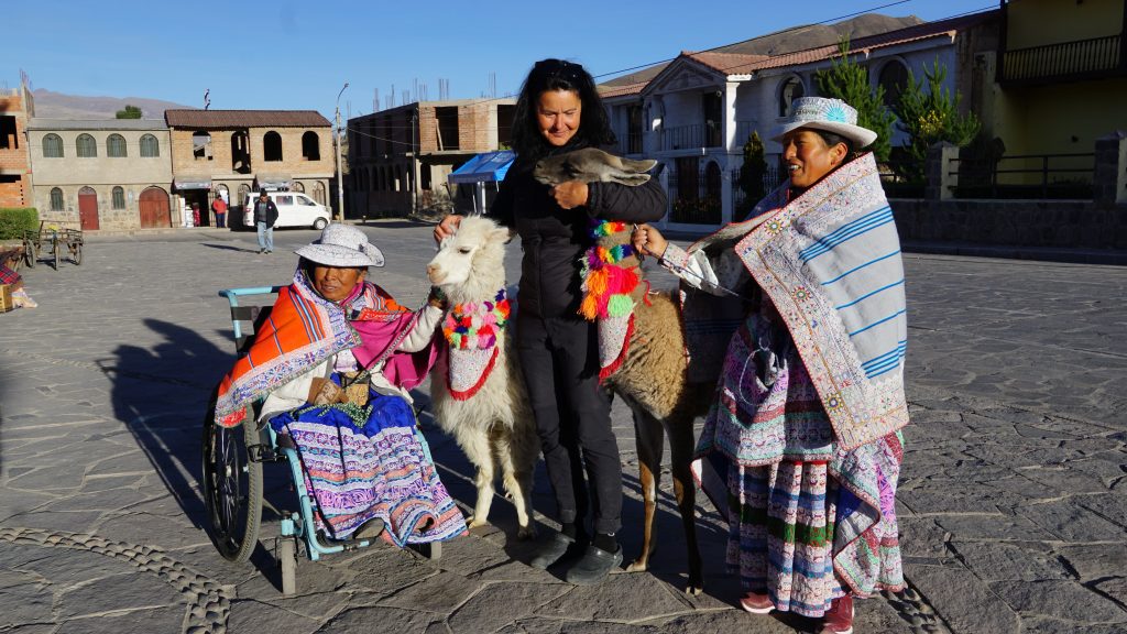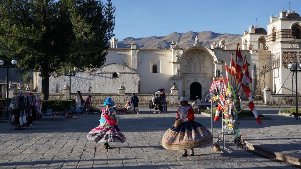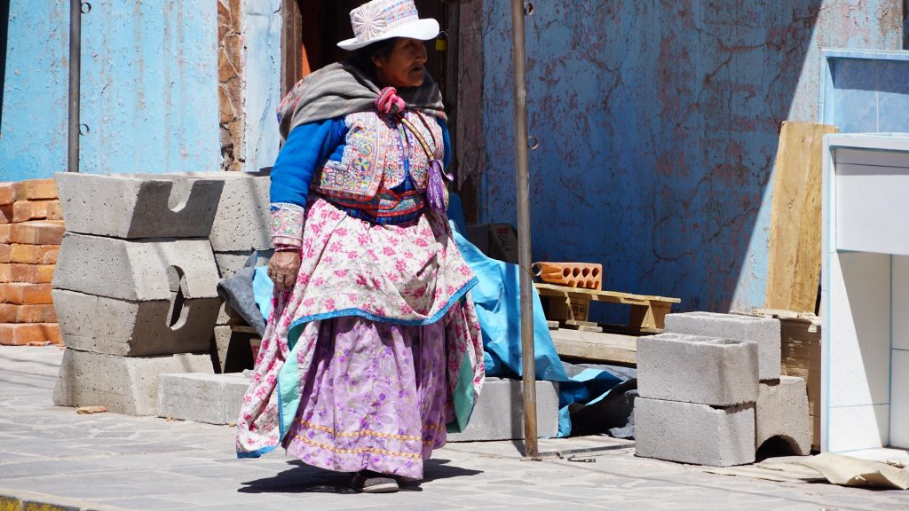Ein Abstecher nach Chivay konnten wir auch nicht umgehen. Ein bisschen über die Plaza schlendern und in der Markthalle stöbern gehört einfach dazu. Auch die Trachten der Frauen beeindrucken Theres immer wieder. In dieser Ausprägung haben wir das in Argentinien und Chile nicht erlebt.