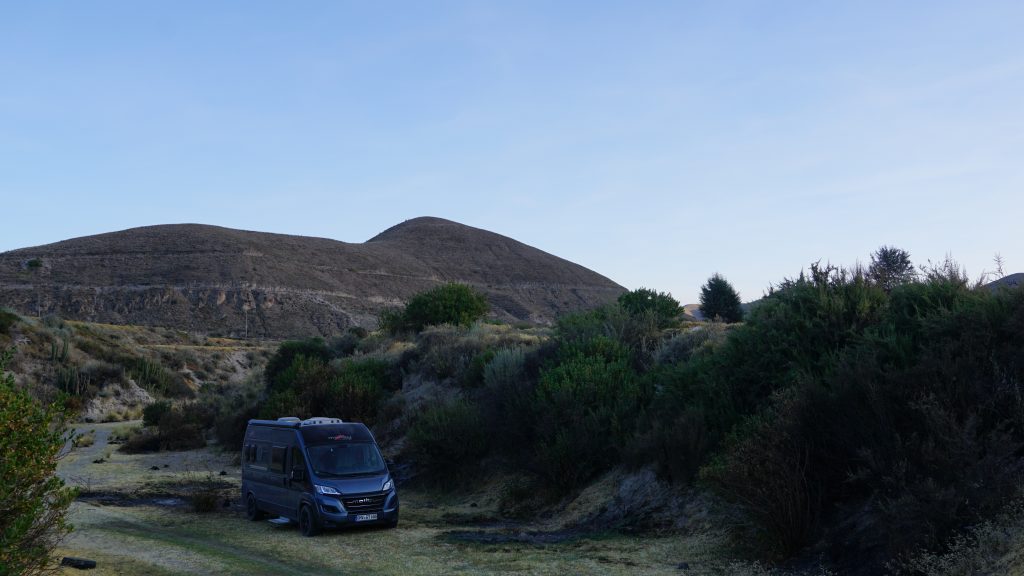 Bis Tambillo sind wir wieder nicht gekommen. Dafür sitzen wir jetzt irgendwo im nirgendwo. Es wurde wieder Zeit, ein Plätzchen zu finden. Nicht weit von der Ruta 34A entfernt soll es ein freies Naturthermalbecken geben. Das passt ja wirklich gut. Dafür mussten wir von der Ruta 34A eine Schotterpiste in das Tal nehmen. Auch nicht schlimm, blöd nur, das wir im iOverlander im Augenblick keine Karte hinterlegt haben. So war es ein „stöbern im Ungewissen“. Die Therme haben wir nicht gefunden, dafür aber ein sehr ruhiges Plätzchen. Ich freue mich auf die morgige Rückfahrt. Aber bis jetzt hat uns unser Camper ja noch nie im Stich gelassen.