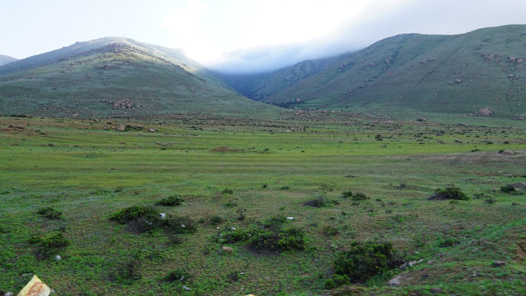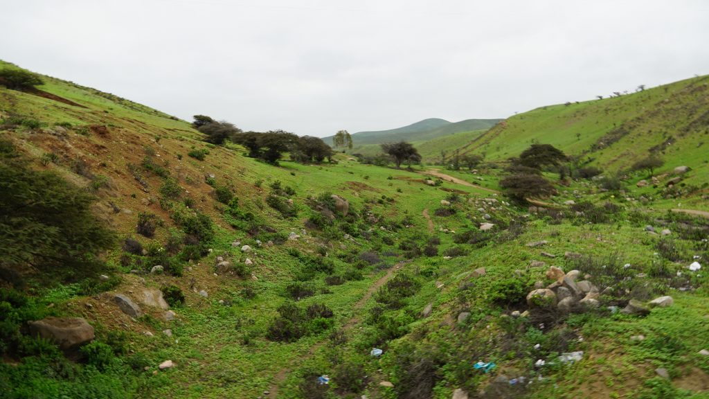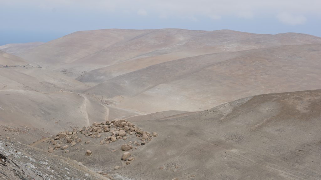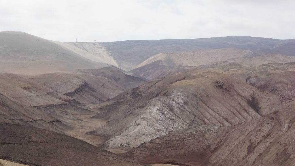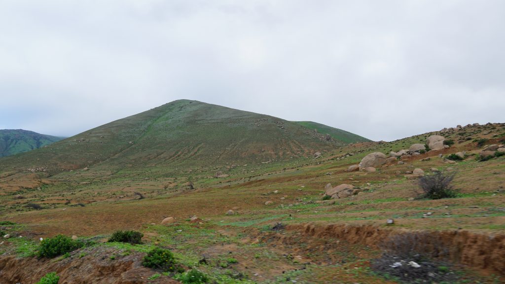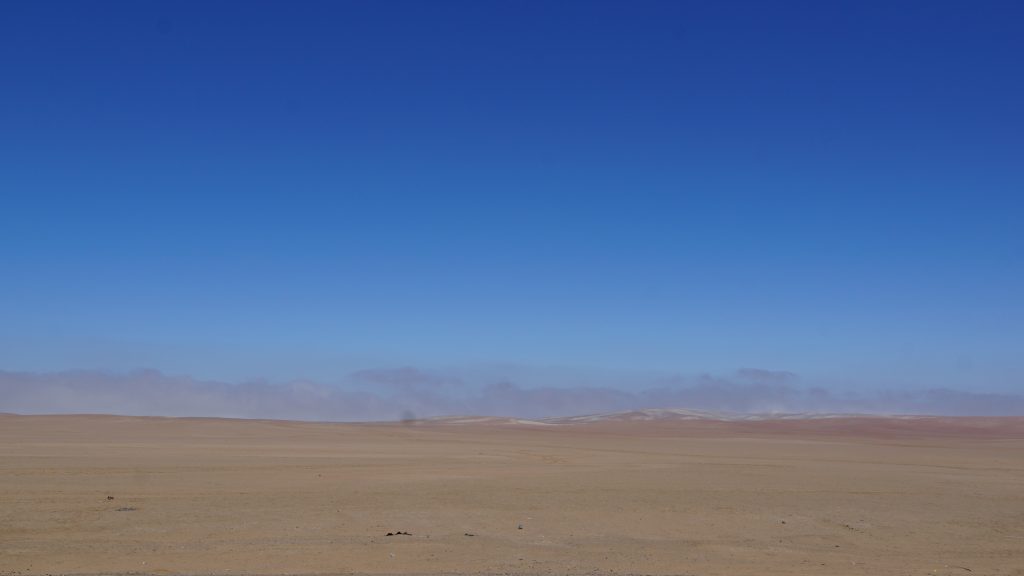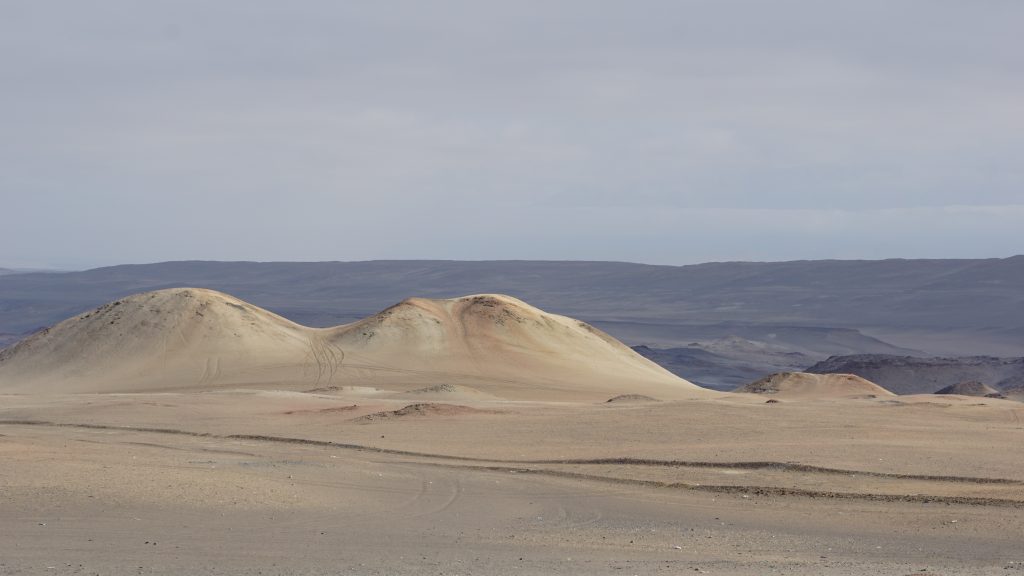 Es ging heute natürlich auch wieder entlang des Pazifiks und der angrenzenden Wüste. Beigetöne ohne Ende und zwischendurch überraschenderweise Hügel, die grün überzogen waren. Das Grün passte aber nicht so richtig zu dem leicht rötlichen Untergrund. Es sah irgendwie unnatürlich aus, handelte sich aber tatsächlich um Grünpflanzen.