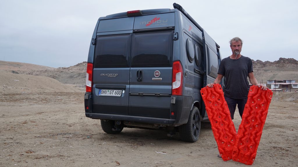 Nun stehen wir am Strand von Puerto Inca, waren noch baden und haben gleichzeitig die Sandbleche wieder gereinigt.