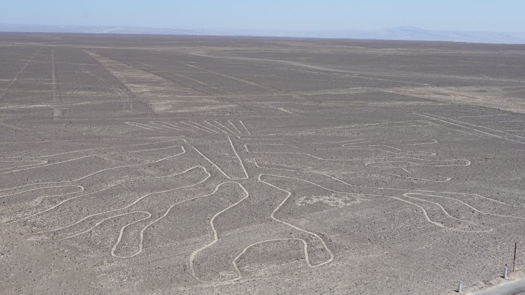 Auch die „Nazca lines Geoglyphs“ konnten wir nicht einfach links liegen lassen. Von der Straße aus sind sie nicht zu sehen. Erst wenn man einen Hügel oder den Aussichtsturm besteigt, sind die einzelnen Formationen zu erkennen.