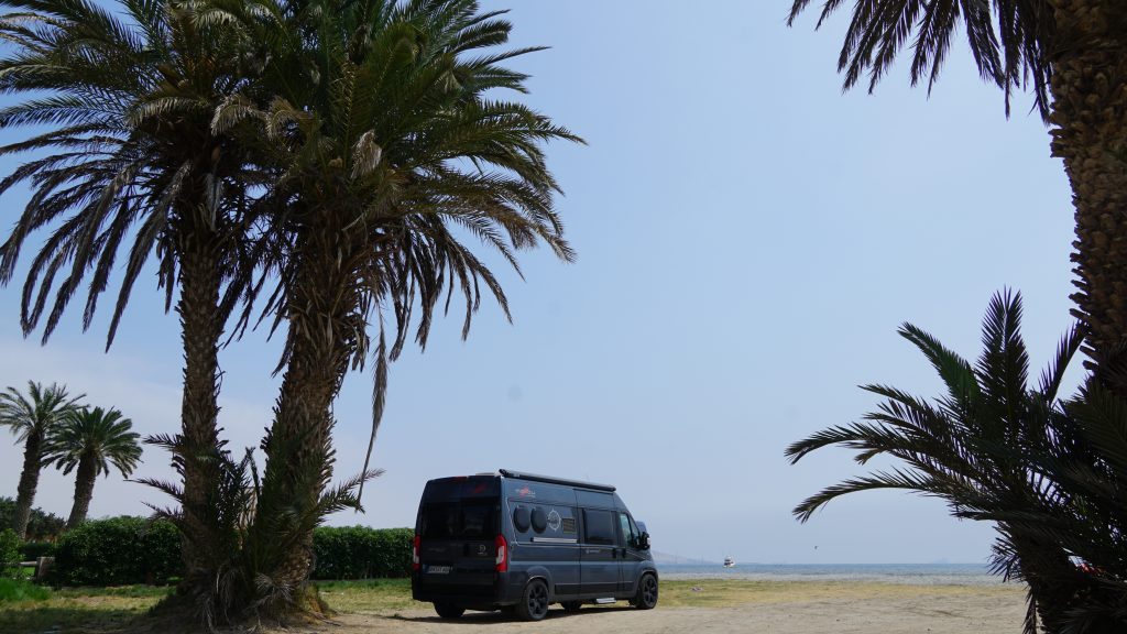 An unserem Stellplatz am Strand sind wir erst einmal vorbei gefahren, bevor wir die Einfahrt gefunden hatten.
