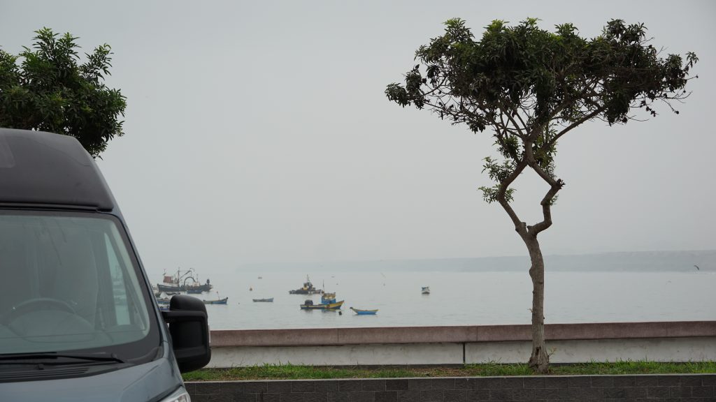 Nun stehen wir in der Nähe des Hafens von Chancay, mit Blick auf das Meer, natürlich Festbeleuchtung und hoffen auf eine ruhige Nacht.