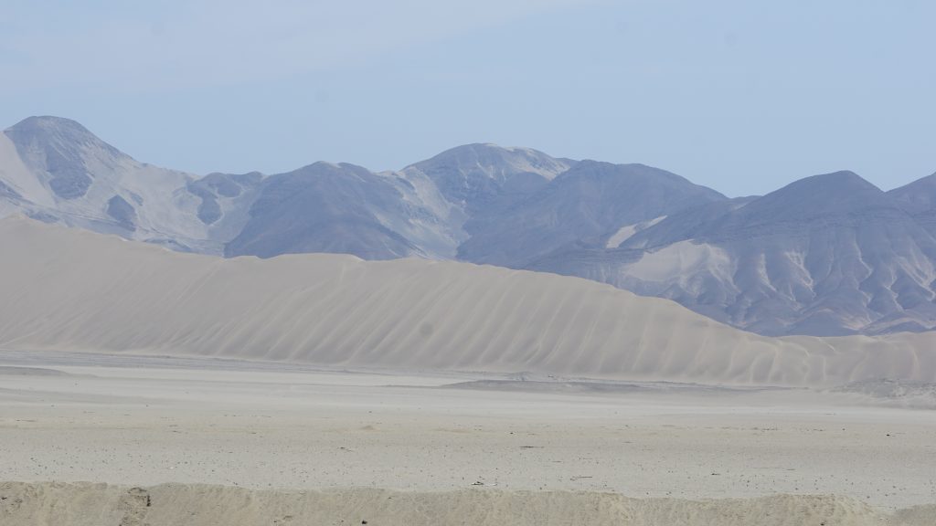 Wir sind auf dem Weg nach Norden. Kaum sind wir hinter Arequipa, sind wir wieder in der Wüste pur. In allen Fassetten, wie wir sie schon hatten. Trotzdem ist es immer wieder beeindruckend, aber auch überraschend. Es ist kaum vorstellbar, wie viele Farben die Wüste hat. Von Arequipa aus ging es direkt zum Pazifik und dann Richtung Norden. Im Westen das Meer und im Osten die bergige Wüste. Wir fahren den Highway Number One von Südamerika und gleichzeitig die Panamerikana. Eine irre Küstenstraße durch die Wüste und an ihr entlang. Im Westen immer der Pazifik mit permanentem Wellengang. Zwischendurch passieren wir eine Oase, geschaffen durch den Rio Ocoña. Bestellte Felder, die bis an den Pazifik reichen. Dann geht es wieder an den Klippen entlang. Teilweise sind wir fast alleine unterwegs, dann wieder unzählige LKW vor uns. Unser Ziel ist Puerto Inca, ein Strand abseits der Ruta 1S. Wir haben den Ort und den Strand auch erreicht. Vielleicht lag es daran, dass die Konzentration nachgelassen hat, oder es sollte so sein. Wir haben uns auf dem Parkplatz, an dem wir gar nicht stehen wollten, festgefahren. Ein vor- und zurückrollen grub die Räder nur tiefer ein. Wieder einmal mussten die Sandbleche zum Einsatz kommen. Gut das wir sie mit haben. Für ein Foto war wieder einmal nicht die Zeit und zusätzlich war es auch schon fast dunkel. Aber wir sind wieder frei gekommen.
