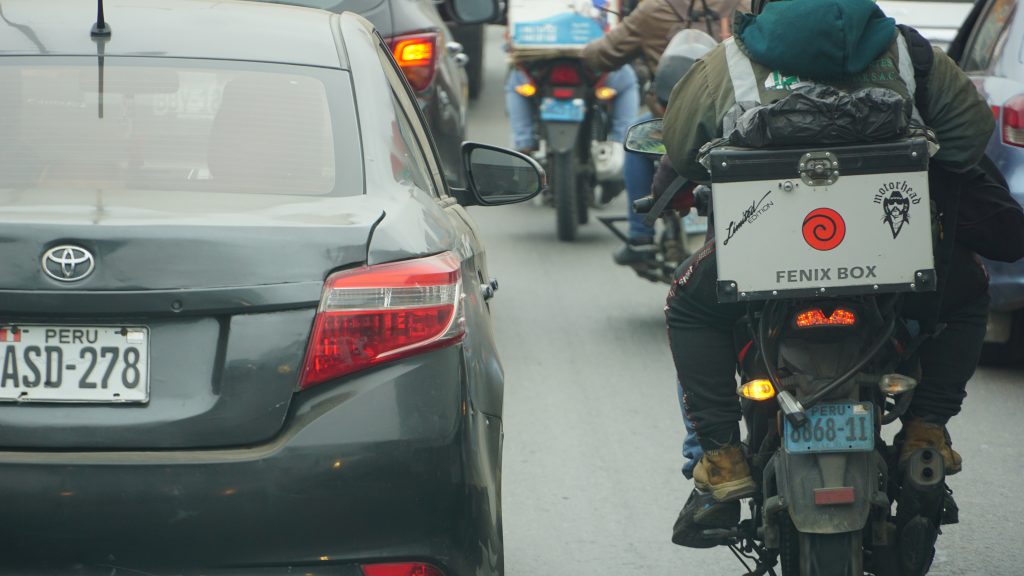 Die letzte Nacht in Chancay hat auch nicht nach mehr Pazifik verlangt. Wieder das typisch Südamerikanische. Eine ruhige Nacht, die plötzlich durch dröhnende Bässe unterbrochen wird. Heute Vormittag war Kampftag angesagt. Gut, dass wir in Chancay übernachtet haben, denn ca. 20 km später gehen die Vororte von Lima los. Dann beginnt das Kräftemessen. Aus drei realen Spuren werden fünf genutzte. Die Mopedfahrer kennen keine Spur und zwischendurch (es ist ja Stau) laufen die Straßenverkäufer und wollen ihre Ware an den Mann oder die Frau bringen. Der eine fährt mit Warnblinkanlage, der nächste blinkt einfach nur rechts und die anderen Hupen oder strecken einfach nur die Hand raus beim Spurwechsel.