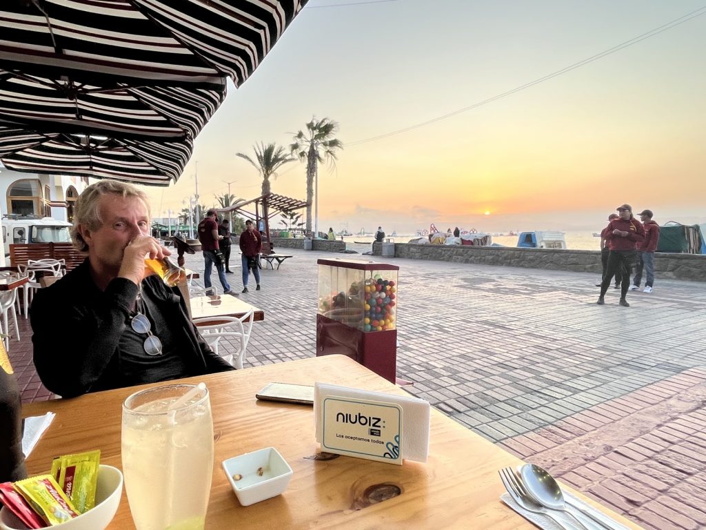 Wir waren früh in Paracas, so gefällt uns das. Den Platz kannten wir ja schon. Er hat sich zwar etwas verändert, denn eine riesige Yacht steht mitten drin, aber was soll´s. Stühle raus und erst einmal einen Mittagsschlaf in der Sonne. Als Abschied vom Pazifik sollte es auch noch einmal Fisch geben. Restaurants am Strand gibt es hier auch mehr als genug. Die Auswahl begrenzte sich dann aber doch mehr an der Frage der bequemeren Stühle. Das Essen ist überall das gleiche und die Küche wird auch geteilt. Wir haben in dieser touristischen Ecke nicht allzu hohe Erwartungen gehabt und dafür war es ok.