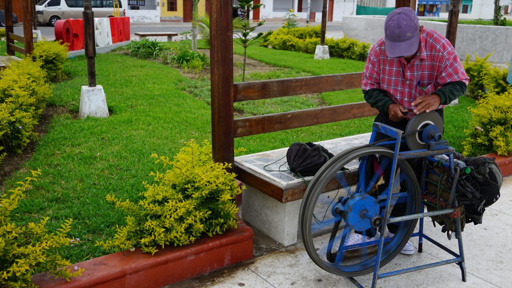 Bilder: Messerschleifer, Reed Fishing Boats, Eindrücke von Chan Chan, Eindrücke von Trujillo, Stellplatz am Strand von Balneario Tortuga,