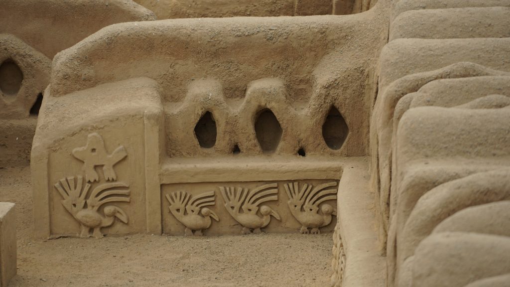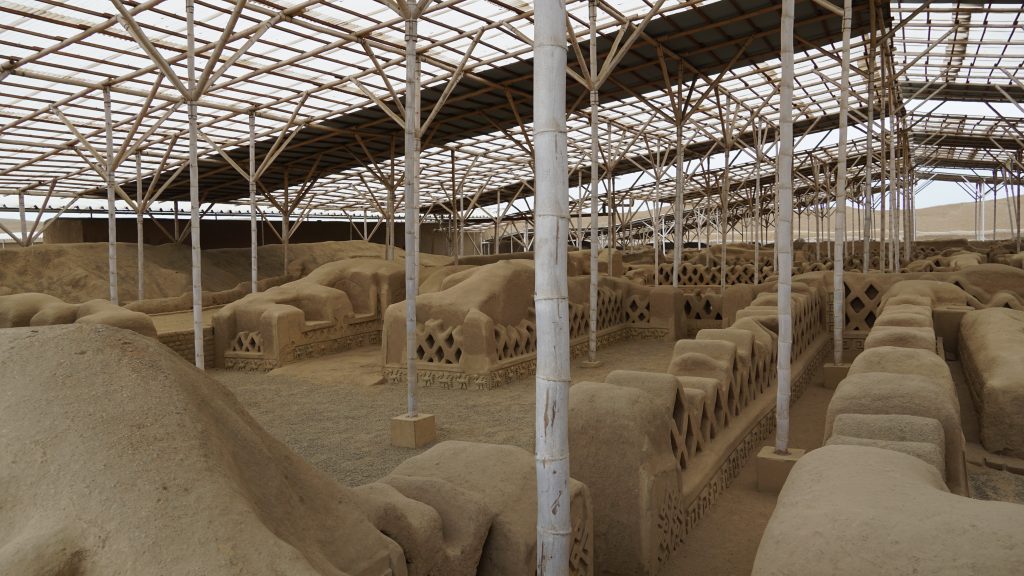 Nicht weit entfernt lag der nächste Stopp: Chan Chan, eine komplett aus Adobe (Lehm) gebaute Großstadt der Chimú (die größte dieser Art in Südamerika) Nach deren Eroberung durch die Inka flohen die Einwohner und die Stadt verfiel dem Wüstensand. Die Natur tat ihr übriges.
