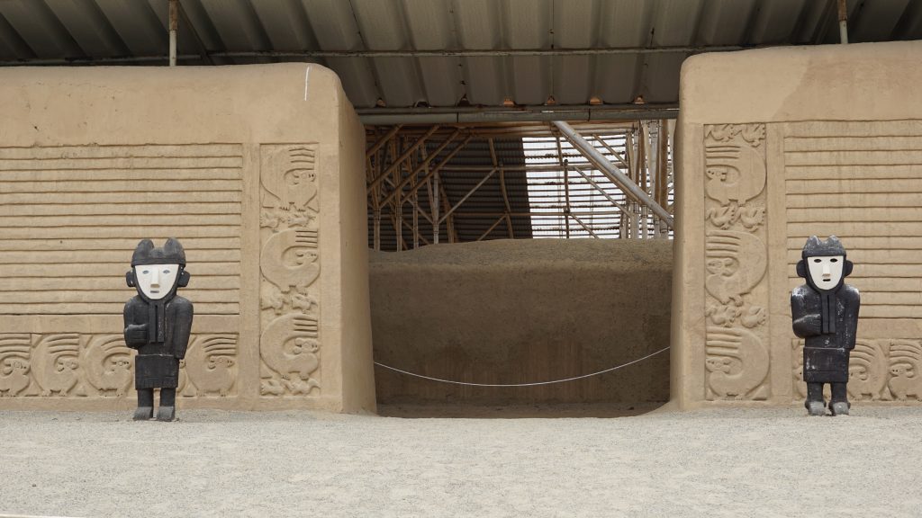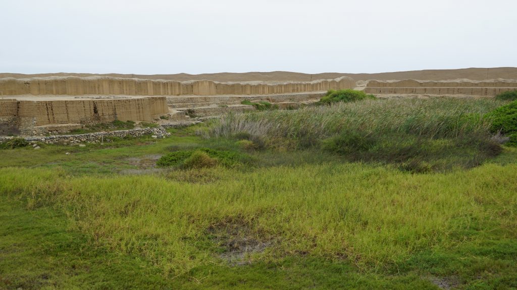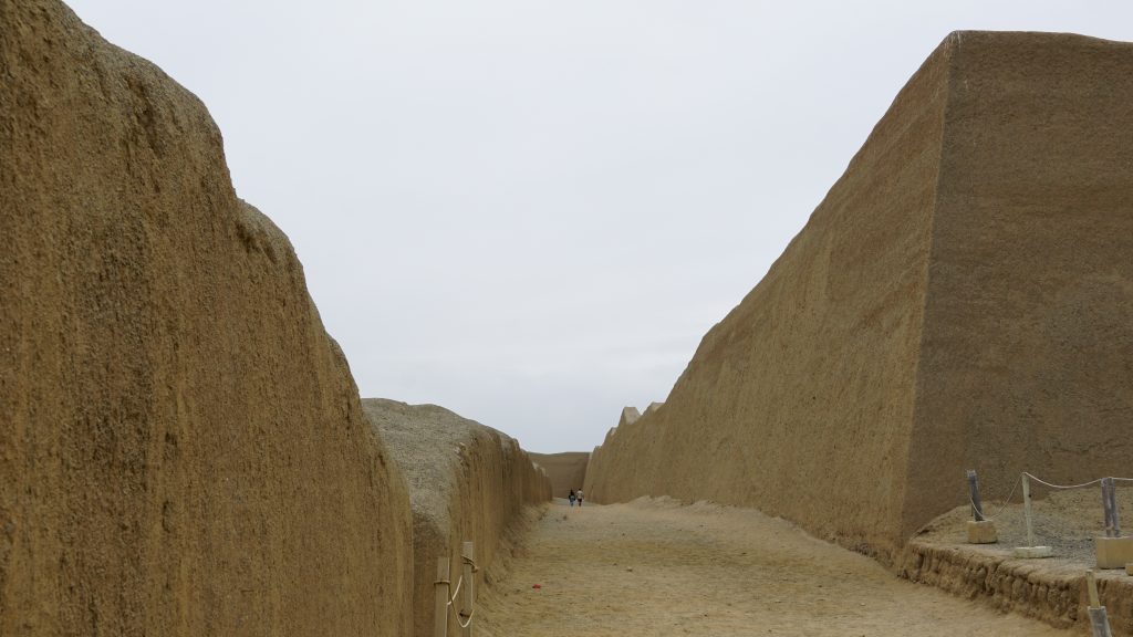 Wir sind der Geschichte der Chimu, Mochica und Inka verfallen. Na gut vielleicht nicht ganz, aber wenn sie auf dem Weg liegen, warum nicht. So sind wir doch noch in den Genuss gekommen, uns eine Pyramide der Chimu anzuschauen. Die Pyramide ist komplett aus Adobe (Lehm) erbaut, beeindruckend, die Baumeister von damals.
