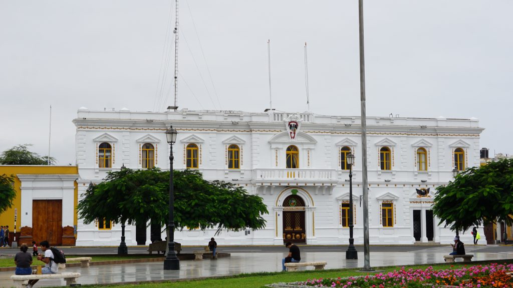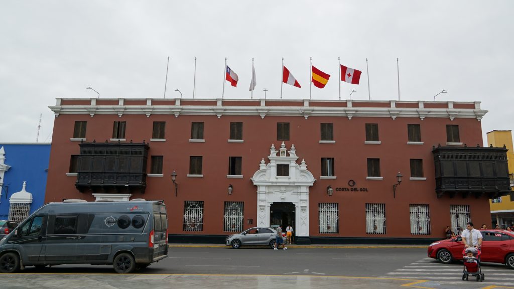 Schade, aber Trujillo stand ja auch noch auf unserer Liste und viel gefahren sind wir bisher noch nicht. So passte es ganz gut und den Abstecher in die Stadt möchten wir auch nicht missen. Eine nette Plaza, eingerahmt von wunderschönen Kolonialbauten.