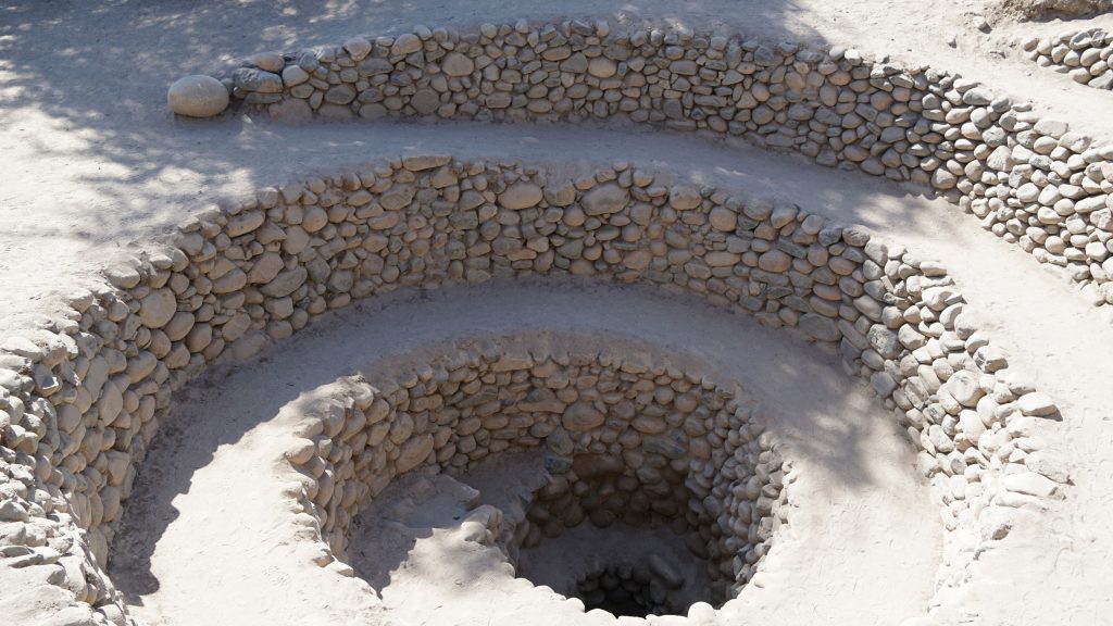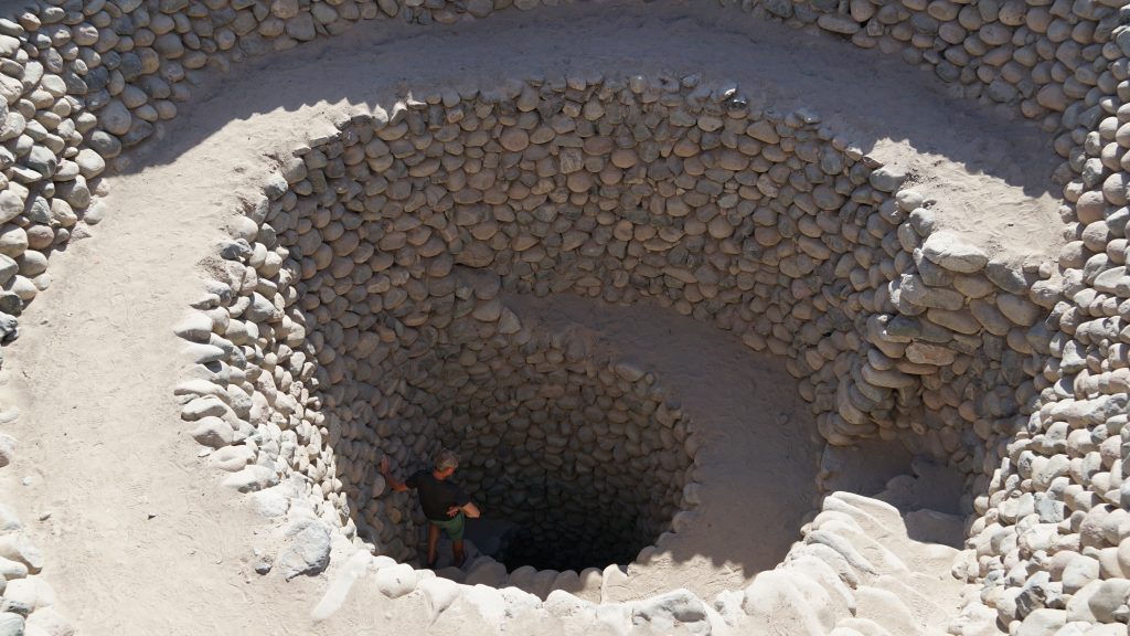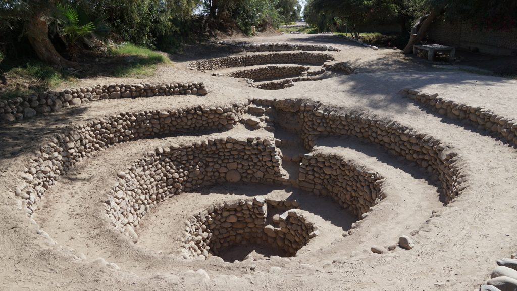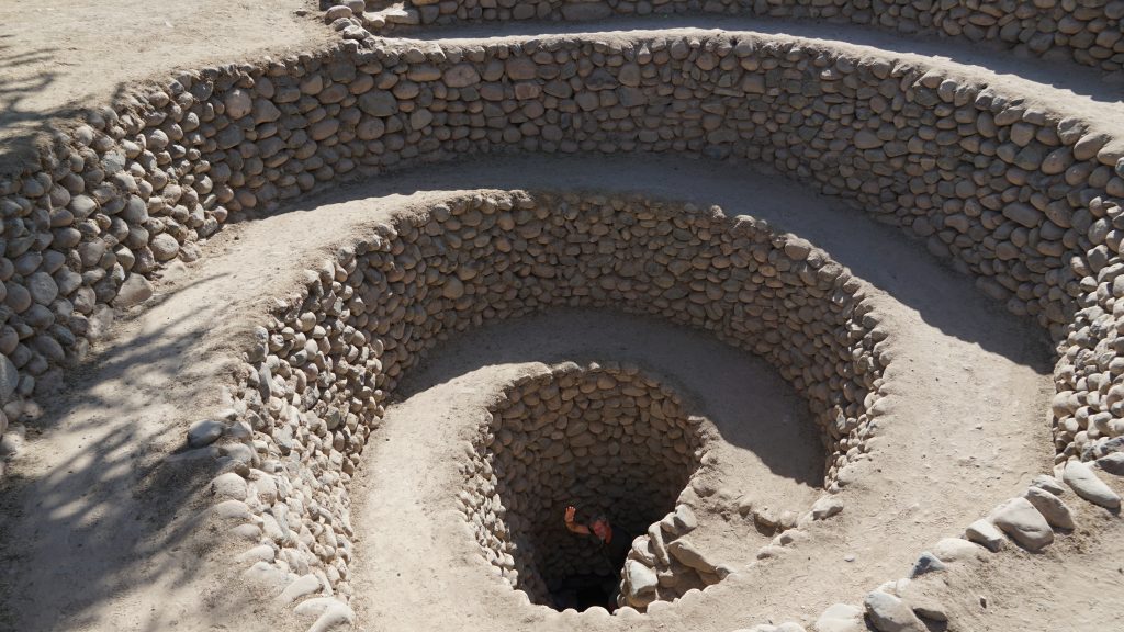 Hier haben die Nascalener unterirdische Wasserkanäle zur Bewirtschaftung der Felder gebaut. Alle 10-20m gibt es einen begehbaren Lüftungsschacht (5-20m) zur Zirkulation der Luft in den Kanälen.