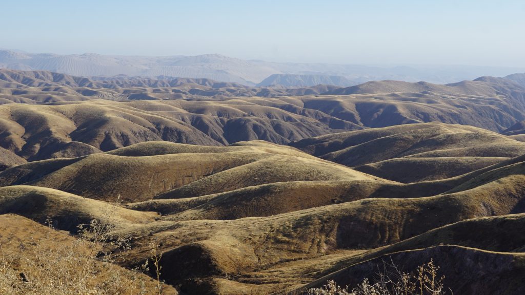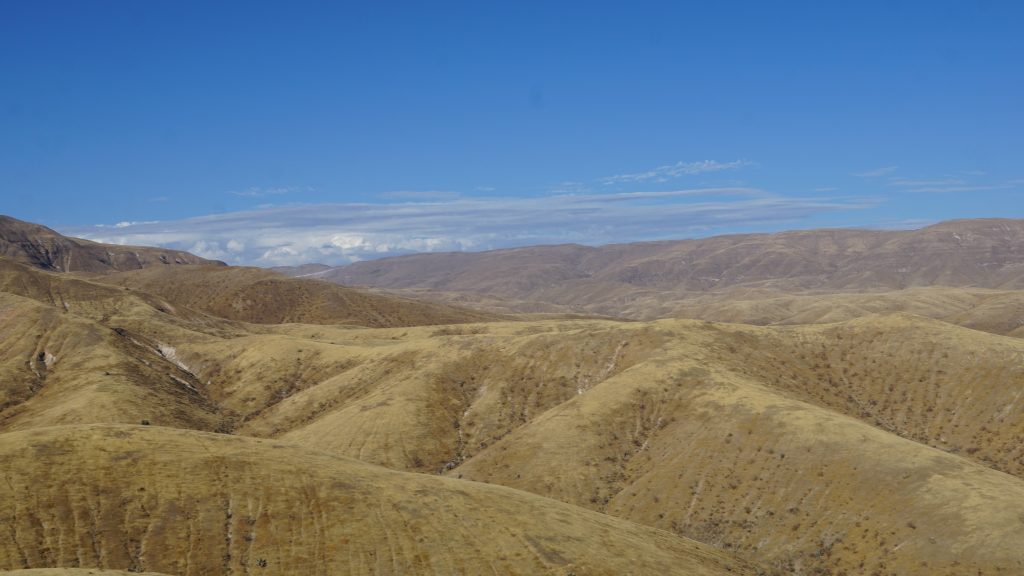 Bildwechsel, wir kommen über den Pass und das Bild ändert sich. Schneebedeckte Berge liegen vor uns. Die weichen runden Formen weichen den kahlen, schroffen.