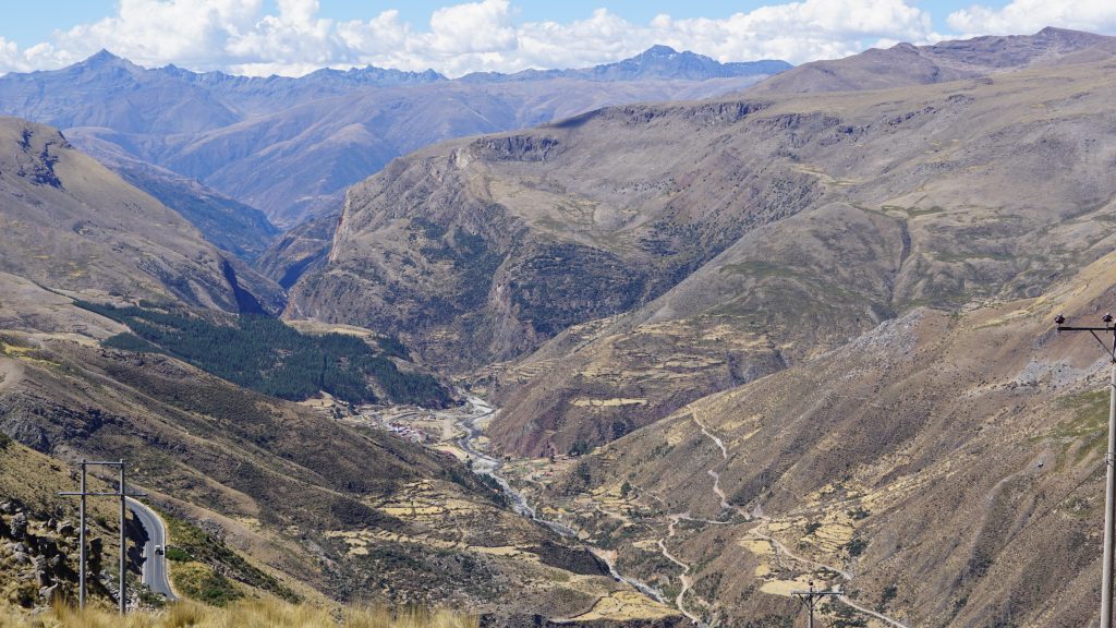 Heute ging es mal weiter bergab, bis auf unter 1900hm. Wir freuten uns darüber, unterhalb von 2000hm zu sein. Das war in Abancay der Fall. In Abancay wollten wir typisch peruanisch am Straßenrand frühstücken. Wir haben darauf verzichtet. Eine volle Stadt, staubig, laut und Straßen, die man so nicht bezeichnen kann. Dort quälen sich auch alle LKW Richtung Cusco durch, also nur so schnell wie möglich raus aus der Stadt. Gut, auf der Flucht haben wir noch schnell Ananas- und Melonenscheiben beschafft.