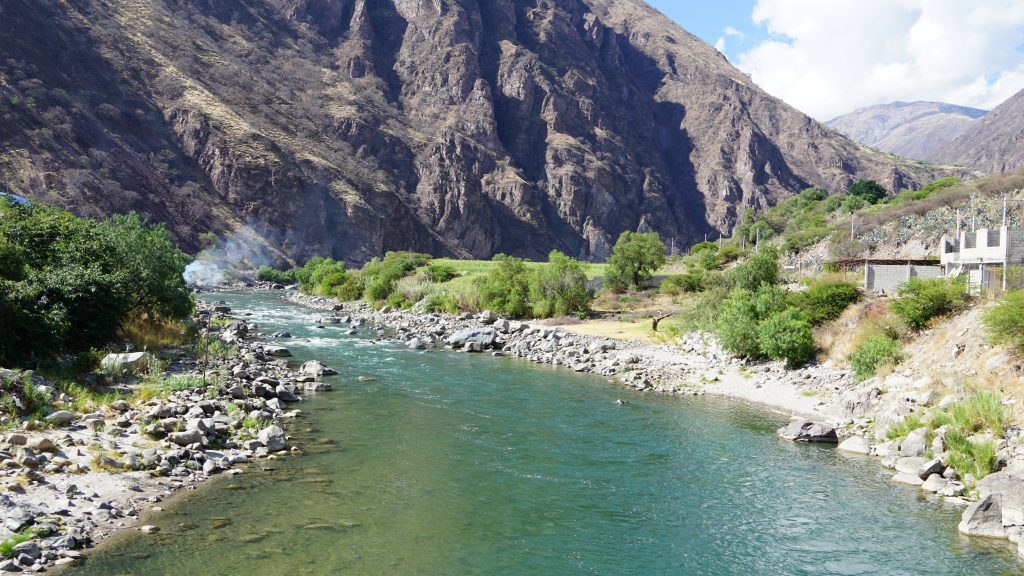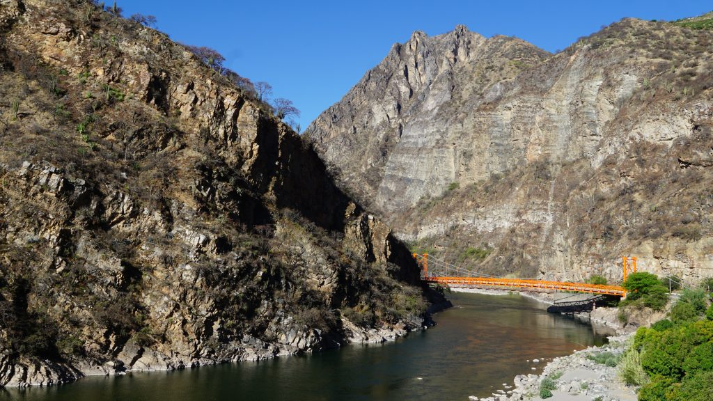 Nun ging es wieder bergab, wieder sind wir auf unter 1900hm. Die Temperaturen stiegen auf 39°C, ganz schöne Temperaturwechsel an einem Tag. Wir kreuzen das tiefe Tal des Rio Apurimac. Herrliches türkises Wasser und überall beginnt es zu blühen.