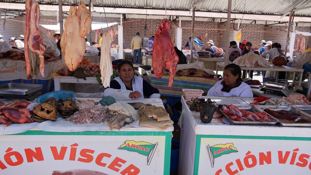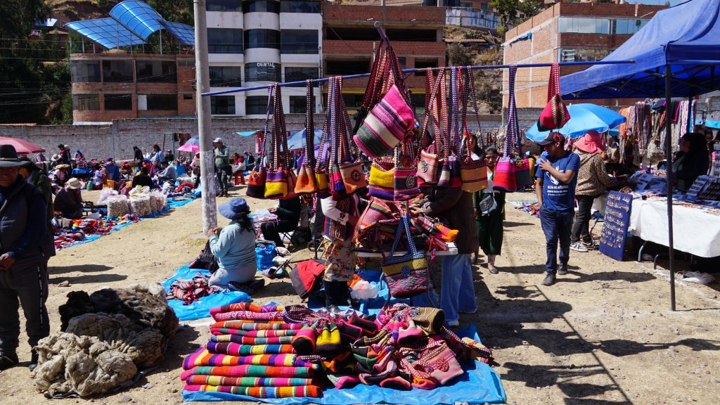 Es war wirklich zufällig, denn wir hatten auf dem Weg zum Flughafen einen tollen Markt entdeckt. An diesem kamen wir auf dem Weg zu unserem Übernachtungsplatz wieder vorbei. Die Straße war komplett dicht, doch es gab Parkplätze an der Seite. Besser geht es ja wohl nicht. Es erwartete uns ein Markt, so wie Theres ihn sich immer vorgestellt hat. Er war riesig, wieder einmal mit allem, was man sich vorstellen und nicht vorstellen konnte. Und auch mit den, von Theres lange gesuchten, einheimischen Decken aus Lamawolle. (nicht dieser synthetische Tourikram) Und Julian war von all der Vielfalt an Obst und anderem sehr begeistert.