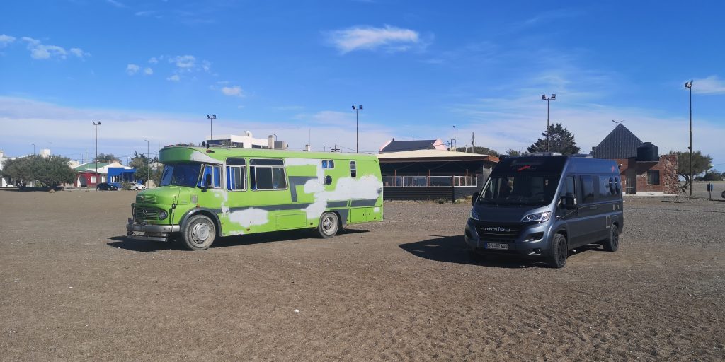 eigentlich wollten wir gestern gar nicht in Playa Magnana stehen, sondern bis Punta Tombo fahren, um am nächsten Morgen mit den Seeelefanten zu frühstücken (eine Empfehlung von Peter). Das wären wieder 70 km Schotterpiste gewesen, doch darauf hatten wir gestern keine Lust mehr. Auch haben wir uns nicht abseits der Argentinier gestellt, sondern mitten drin gestanden. Wir hatten das Gefühl, für kurze Zeit dazu zu gehören, ohne zu stören. Als wir wieder auf der Straße waren, stellten wir uns die Frage, ob wir wieder dem Zwang erlegen waren, zu einer bestimmten Zeit ein Ziel zu erreichen. Die Frage haben wir für uns beantwortet, lassen sie aber im Reisebericht offen, das kann jeder für sich entscheiden.