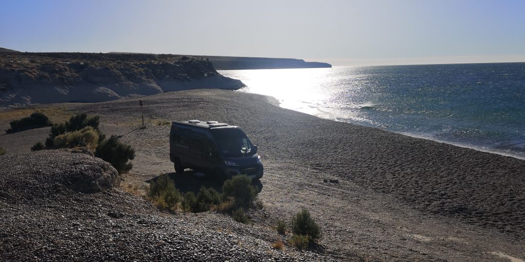 Nachtrag, nun stehen wir nicht mehr allein, ein argentinisches WoMo steht in einem guten Abstand und leistet und Gesellschaft.