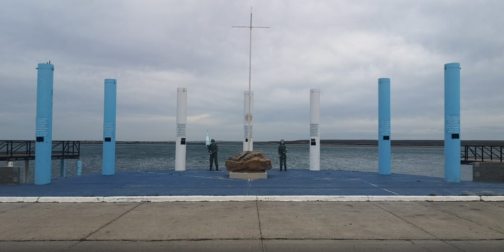 ja, wir stehen auf dem Campingplatz der Stadt, für 4 €, das nenne ich mal einen Preis. Immerhin bietet er Toiletten, Duschen und eine windgeschützte Grillstelle. Also wirklich ok, alles andere haben wir ja auch dabei. Mit den „alle Fünfe gerade sein lassen“ ist das so eine Sache. Wir sind halt unterwegs, alles arbeitet ein bisschen und arg staubig wird auch alles. Trotzdem, der Tag begann mit einem Bad im Atlantic (für Theres zumindest, ich hatte keine Lust) und einem Spaziergang durch Puerte Deseado verbunden mit der Suche nach einer Panaderia (Bäckerei) für das Frühstück. Ein netter kleiner Ort mit hübschen Häuschen. Das ist nicht so typisch für AR. Auch einen sehr sehenswerten historischen Bahnhof gab es. Und jede Menge Heldenverehrung begegnet einem überall. Wir waren in einem kleinen SuperMercator, das sah original aus, wie in unseren Kaufhallen damals, inklusive der gestreckten Waren, um die Leere zu kaschieren. Irre. Der Vormittag war anstrengend, also erst einmal ausruhen, um die angefallenen Arbeiten zu beginnen.