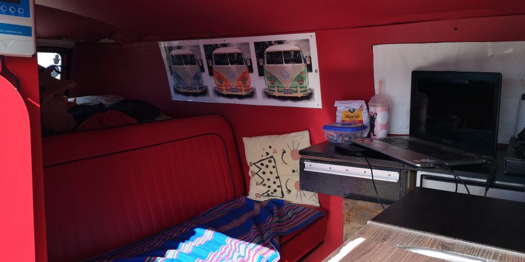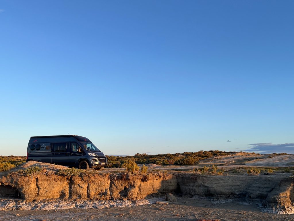 Dabei ging es um die dauerhafte Befestigung der Hecktürisolierung (die originale Magnethalterung hält diesem Wind nicht stand und droht bei jedem Öffnen der Türen davon zu fliegen), den von mir gebauten Gasschlauchadapter noch einmal abdichten (er war irgendwie undicht) und Theres wollte im Camper wieder „klar Schiff“ machen. Ob sich meine Arbeiten bewähren, wird die nächste Zeit bringen. Das Ergebnis von Theres ist sofort zu sehen. Es blitzt und glänzt wieder überall. Mehr gibt es heute nicht zu berichten. Morgen geht es dann weiter Richtung Süden.