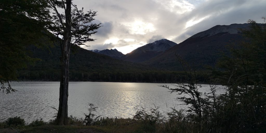 Wir wollen dort eine Bootstour unternehmen, Informationen und Material für den Nationalpark beschaffen und einfach auch ankommen. So haben wir ca. 50km vor dem Ort halt gemacht, am Lago Escondido. Endlich mal wieder Grün, statt Steinen vor der Tür und endlich im Süßwasser baden, er hat gefühlt 5°C. Der Kanonenofen wurde angeworfen (um Gas zu sparen) und Fleisch sowie Gurke und Tomate in der Pfanne gebraten. Wir waren fast fertig, als die Polizei den wirklich schlechten Weg entlang kam (nicht ohne mehrmals aufzusetzen), um ausschließlich uns zu besuchen. Wirklich ganz freundlich machten sie darauf aufmerksam, dass offenes Feuer nicht erlaubt ist. Nachdem wir das natürlich vorschriftsmäßig löschten, fuhren sie wieder davon und wir waren wieder allein.