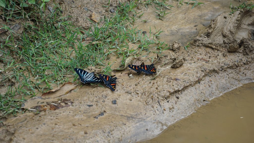 Wir haben ganz vergessen, wie anstrengend laufen sein kann. Wir merken alle Knochen, doch es war ein schöner Ausflug. Wir überquerten mehrere kleine Flüsse, an denen wir uns sogar Übergänge bauen mussten. Auf dem Weg konnten wir wunderschöne Schmetterlingsarten und Vögel beobachten. Auch die Geräuschkulisse war wieder beeindruckend und lautstark. Natürlich ging es nicht nur auf einer Ebene entlang, sondern 300hm nach oben.