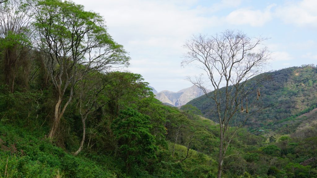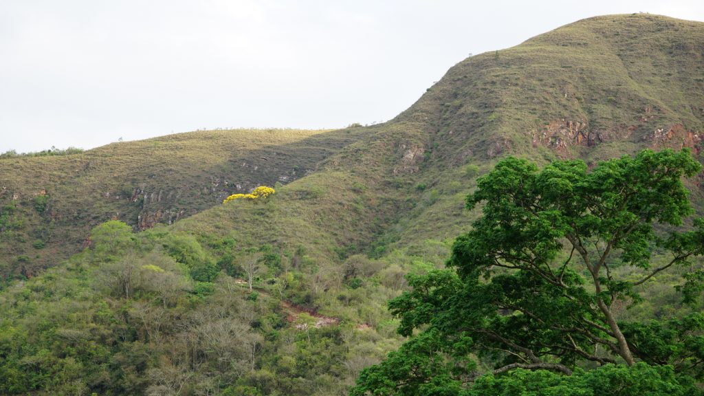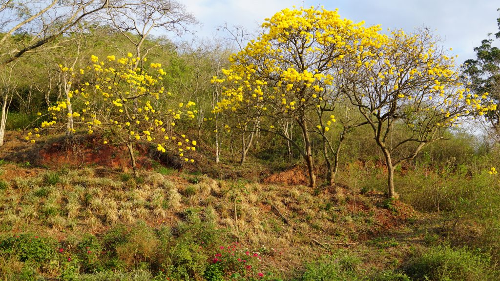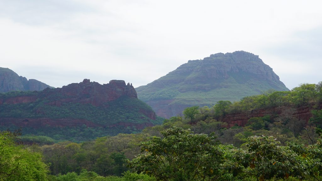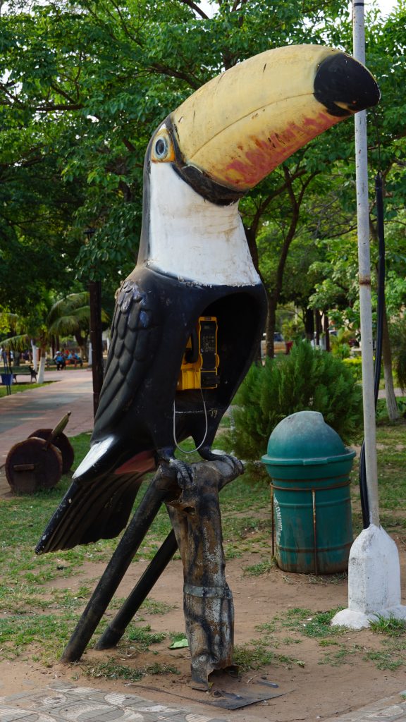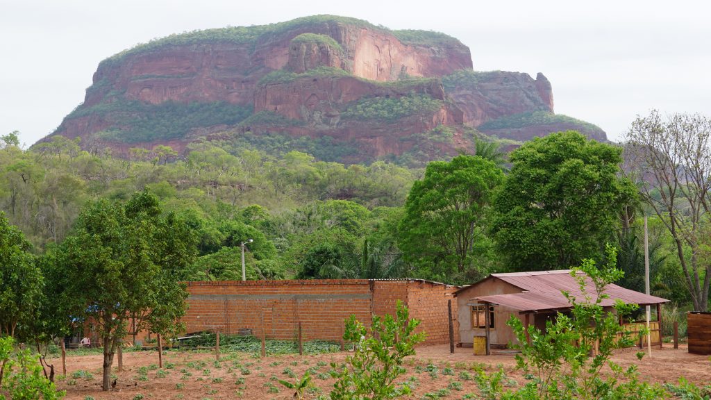 Uns ist jetzt auch klar, warum die Strecke so öde ist. Bis San José ging es mal wieder durch die Pampa. Die Straße ist eine gerade Linie bis zum Horizont, ähnlich der Ruta 40 in Patagonien. Danach änderte sich das Bild. Es wurde etwas hügeliger und ging auf bis zu 500hm. Endlich waren mal wieder rote Felsen, teilweise als Plateau, zu sehen. Der Reiseführer spricht von Savanne. Dichte grüne Wälder an steil aufsteigenden Felswänden. Ich habe am Straßenrand einen Tukan gesehen. Viele Palmen und in den Orten Mangobäume mit leider noch grünen Früchten.