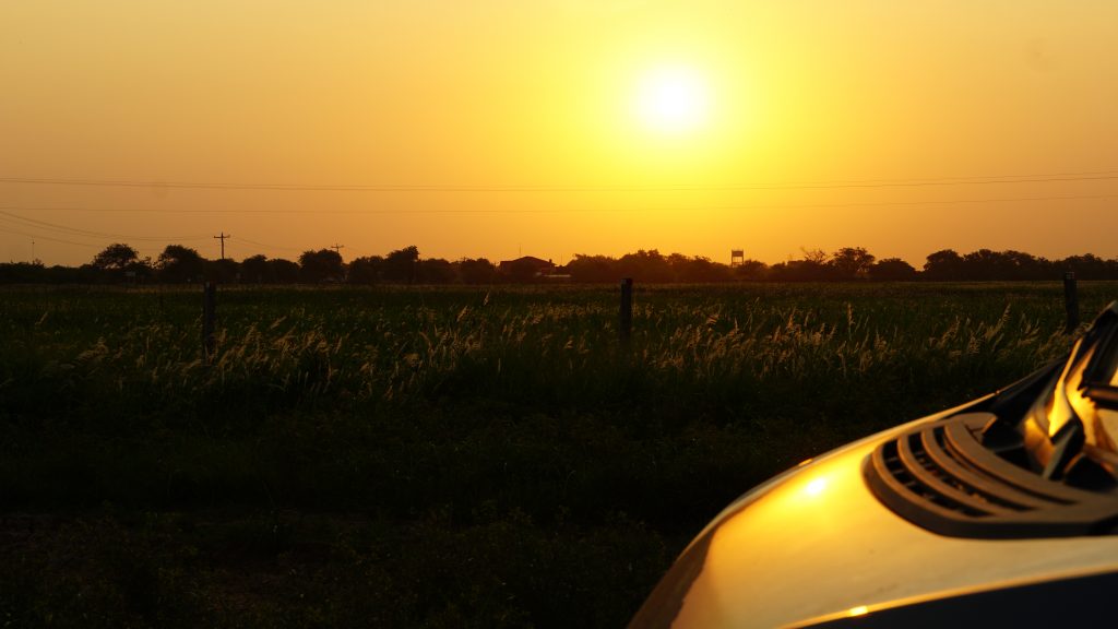 Die Tankstelle in Tres Cruces war eigentlich nicht unser Ziel. Zwischen den LKW zu stehen versuchen wir zu vermeiden. Hier stehen aber keine LKW, es gibt grüne Wiese, es ist ruhig und einen Sonnenuntergang hatten wir gratis dazu.