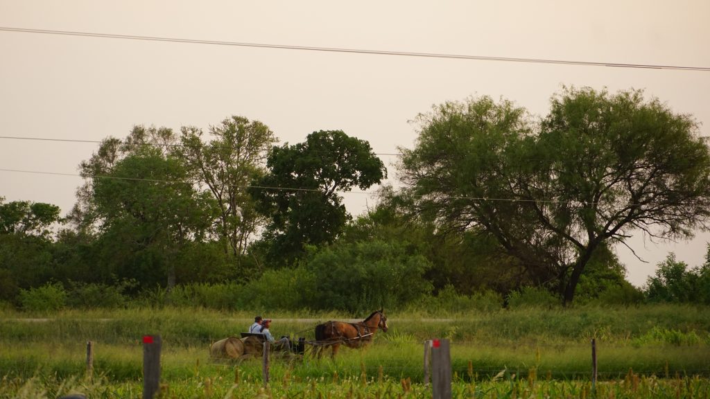Na vielleicht nicht ganz öde, denn der Südosten Boliviens ist das Zuhause von über 25000 Mennoniten. Die Mennoniten lehnen den Luxus der Neuzeit ab und leben wie vor 300 Jahren. An den Straßen gibt es Schilder für ein Verbot von Pferdefuhrwerken. Es war schon ein eigenartiges Bild, als wir das erste Pferdefuhrwerk mit Menschen sahen, deren Kleidung wieder einmal an die „Waltons“ erinnerte (auch wenn das Zeitfenster nicht ganz stimmt).