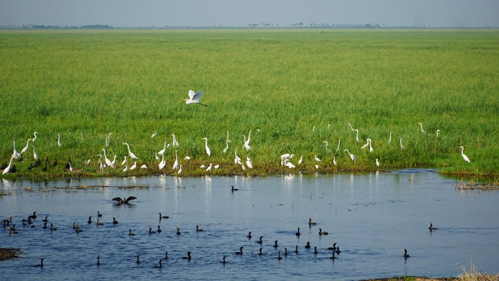 Puerto Suarez liegt an der Laguna Caceres, hier werden wir auch die Nacht verbringen. Als wir mit unserem Camper an der Lagune standen, fühlten wir uns wie in Zingst auf dem Darß. Wir schauen über die Lagune auf grüne Wiesen zu den Reihern. Genauso, als stünden wir am Zingster Hafen und schauten über den Bodden. Na gut, es gibt vielleicht eine gewisse Temperaturdifferenz und nicht ganz so viele Mücken, mit denen wir hier zu kämpfen haben. Gegen 19:00 haben wir fluchtartig den Camper aufgesucht, es war draußen nicht mehr auszuhalten. Allerdings mussten wir auch im Camper erst einmal Kammerjäger spielen. Wir hoffen, dass wir fast alle erwischten und eine ruhige Nacht haben werden. Natürlich abgesehen von den Naturgeräusche, die wieder einmal zahlreich sind.