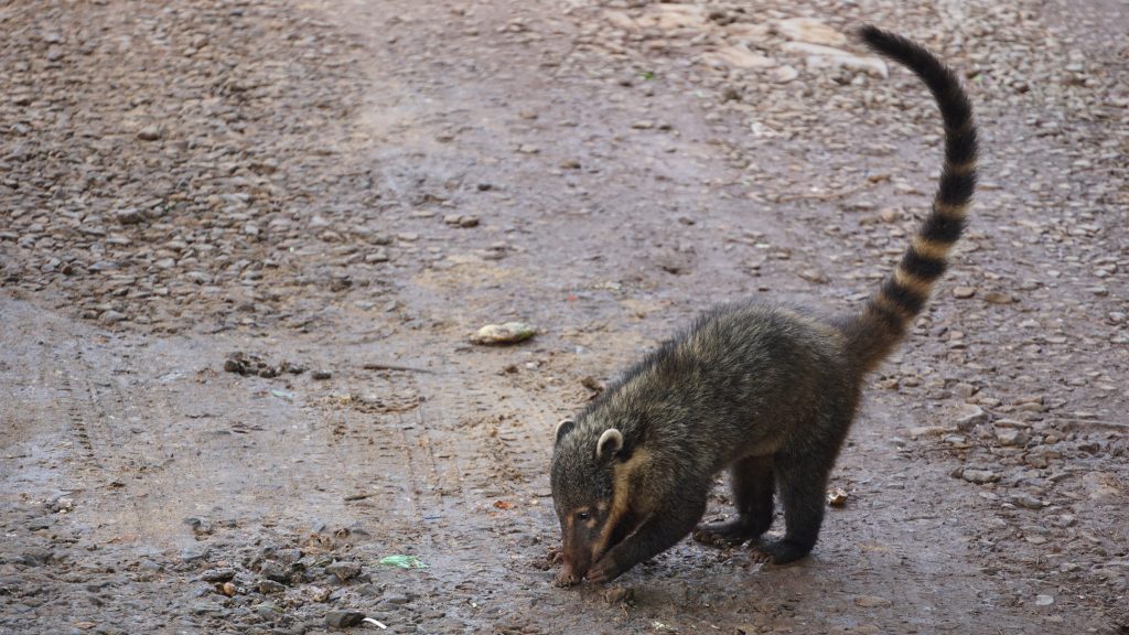 schade, von Affen wurden wir nicht geweckt, aber als wir den Platz verließen, begrüßten uns die Coati (Nasenbären). Das nenne ich einen fairen Ausgleich.