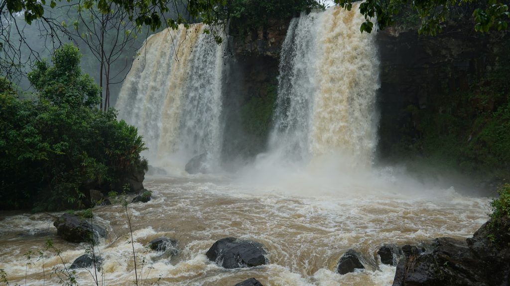 Was für Wassermassen…., die wie in einem Sog mit einem Getöse in die Tiefe stürzen! Ein Erlebnis, bei dem uns wieder einmal die Luft weggeblieben ist. Einfach irre, es hört nicht auf mit dem Wasser. Man kann dort stehen, in die Tiefe schauen und einfach nur stehen bleiben und schauen, schauen, schauen. Über Nässe brauchten wir zu diesem Zeitpunkt schon keine Gedanken mehr zu verschwenden. Viel hatten wir sowieso nicht an, aber gute Regenjacken. Nach diesem Tag stellt sich die Frage, was eine gute Regenjacke ist.
