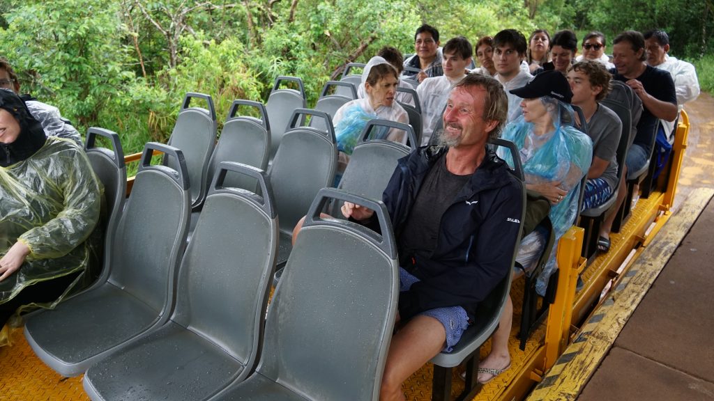 Der Regen glich eher einer Sintflut als normalem Regen. Wir sind absolut entwöhnt und dachten, dass es mit der Sonne immer so weiter geht. Nun ist es wohl, laut Wetterbericht, der Regen. Und das ausgerechnet heute, wo wir den ganzen Tag an den Iguazú Wasserfällen verbringen wollen. Kurz kommt der Gedanke auf, warum wir es nicht doch noch gestern bei Sonnenschein gemacht haben. Die Antwort ist klar, wir wollten einen ganzen Tag Zeit für den Park haben.