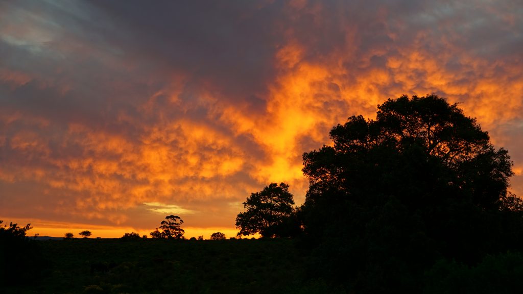 Dann kam eine Nebenstraße, hier stehen wir am Rand und haben den Abend und den Sonnenuntergang genossen.