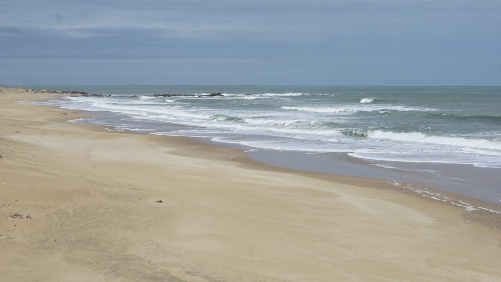 Was für ein Kontrastprogramm in der Geräuschkulisse. Heute früh Vogelgezwitscher und das Brunftblöken der Ochsen, im Sumpfgebiet ab und zu das Gefühl von Regenwald und jetzt das Wellenrauschen am Atlantik.