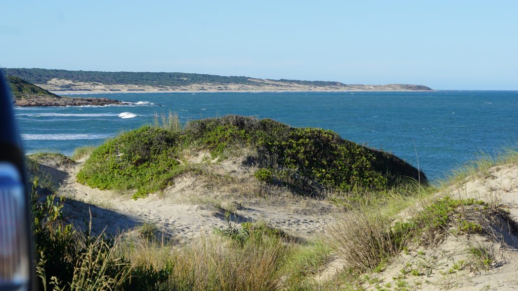 es stand auf der Kippe, ob es heute ein Stück weiter geht. Ab Mittag war es echt warm an unserem immer noch einsamen Strandplatz. Da es windig war und der Himmel nicht ganz wolkenlos, entschieden wir uns für Punta del Diablo. Wir können ja schauen und wenn es uns nicht gefällt, fahren wir die paar Kilometer einfach wieder zurück.