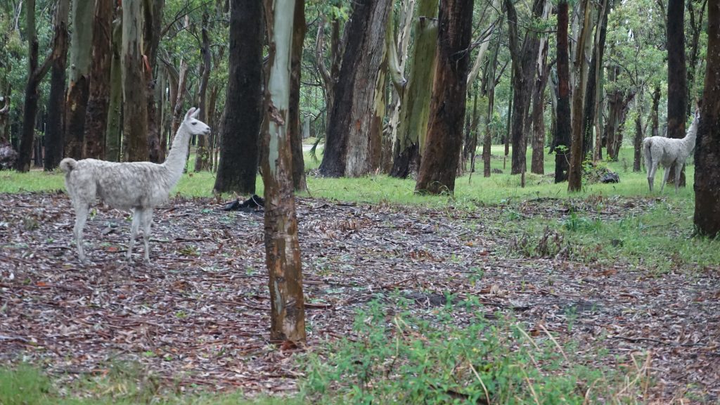 Aber welch ein netter Abschied aus dem Nationalpark. Plötzlich stehen uns doch tatsächlich Lamas im Wald gegenüber. Damit hätten wir hier nicht gerechnet. Auch ein Hirsch ließ sich noch kurz blicken. Für ein Foto war er aber zu schnell.