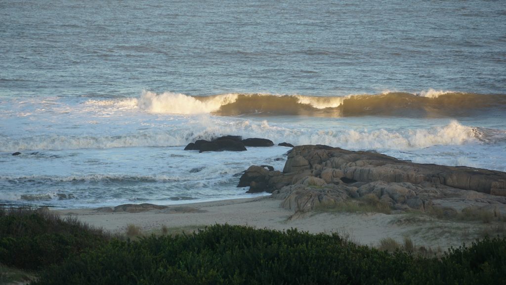 Wir stehen im Fortaleza del Santa Teresa Nationalpark. Auf Grund der Nähe zu Brasilien (Grenzgebiet) wird er durch die uruguayische Armee betreut. Die Stellflächen auf dem Campingplatz waren für uns nicht ganz ersichtlich. So standen wir auf dem Parkplatz am Strand mit einem herrlichen Blick aufs Meer. Um 21:00 stand mal wieder die Armee vor der Tür. Wir durften ein weiteres Mal auf unserer Tour Nachts umparken.
