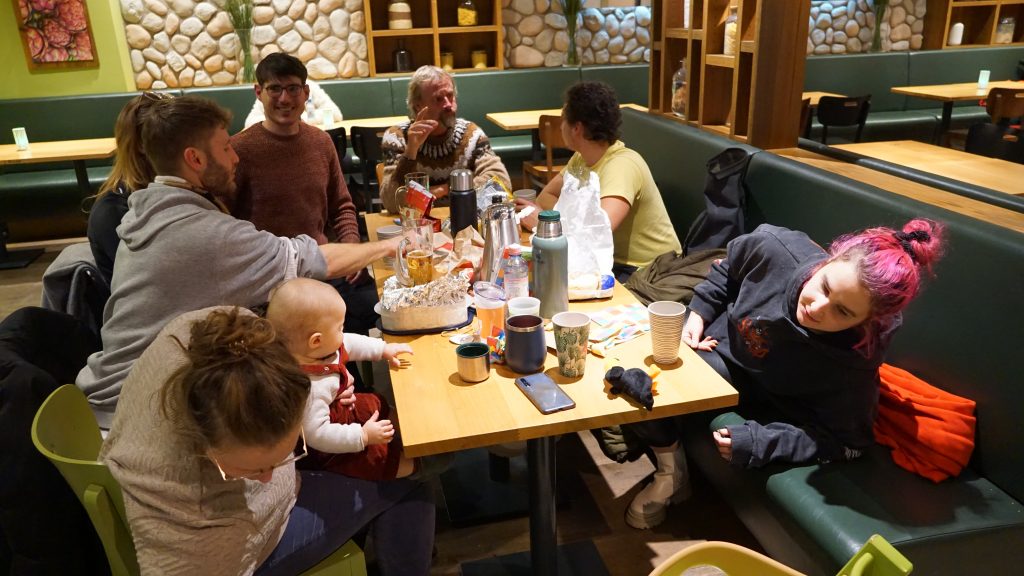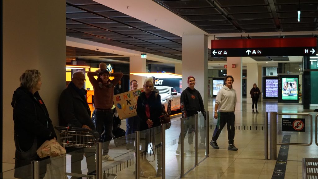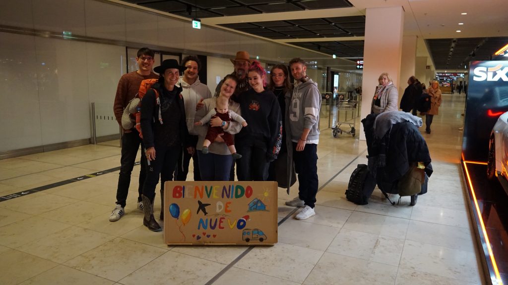 Die Überraschung war gelungen. Am Flughafen in Berlin wurden wir von der ganzen Familie empfangen, wie damals beim Abschied. Aber nicht nur das, ein ganzes Picknick mit Glühwein, Bratwurst und Brötchen und Weihnachtsgebäck hatten sie dabei. Und so haben wir es uns in der Empfangshalle noch gemütlich gemacht und erzählt.