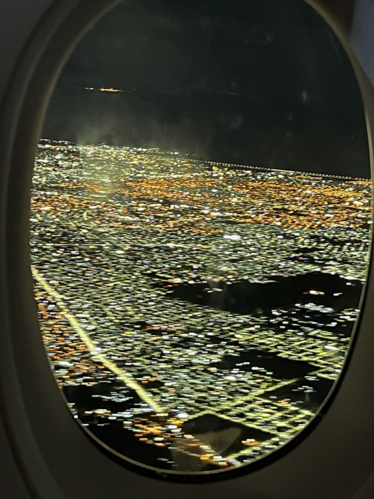 Wir fliegen in die Nacht. Noch ein letzter Blick über das beleuchtete Buenos Aires, dann wird es dunkel.